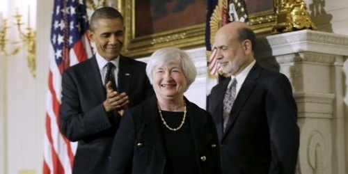 Le successeur de Ben Barker à la tête de la FED est donc une femme. Pourtant, Janet Yellen, 67 ans, économiste, ne s’est retrouvée que tardivement sur le devant de la scène administrative américaine. Son parcours a tout de la success story américaine : née en 1946 dans un milieu populaire, élève au lycée public, puis à étudiante à l’Université de Yale, elle enseigne par la suite à Harvard puis, après un bref passage par la FED (ou elle rencontre son futur époux, futur prix Nobel d’économie), avant d’enseigner à la London School of Economics. Outre son travail d’analyste depuis 1977, ce n’est qu’en 1994 qu’elle est approchée par l’administration Clinton, dont elle devient un des principaux conseillers, bientôt en lieu et place de Joseph Stiglitz à partir de 1997. De 2004 à 2010, elle préside l’antenne de la banque centrale à San Francisco, avant de se rapprocher de Washington. Et c’est avec l’ambition du changement qu’elle est propulsée, au dépend de Lawrence Summers, à la tête de l’institution américaine.